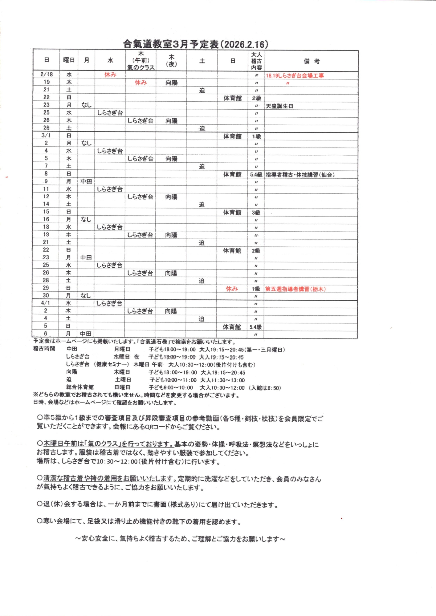 ※ どこの会場で、何度でも稽古できます。